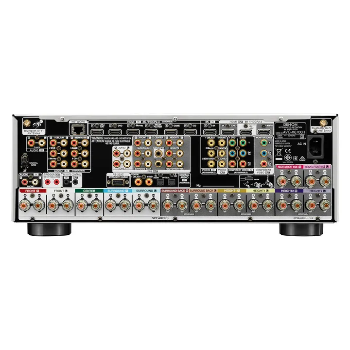 AVC-X6700H har hele tre HDMI-udgange inkl. HDMI Zone 2, og via HDMI-indgangen på fronten kan du på et øjeblik tilslutte kamera, spilkonsol m.m. uden at skulle ned og rode bag apparaterne i reolen. Herudover får du hele 7 HDMI-indgange bagpå med HDCP2.3, konvertering fra analog video til HDMI og opskalering helt op til 8K/60Hz opløsning via HDMI.