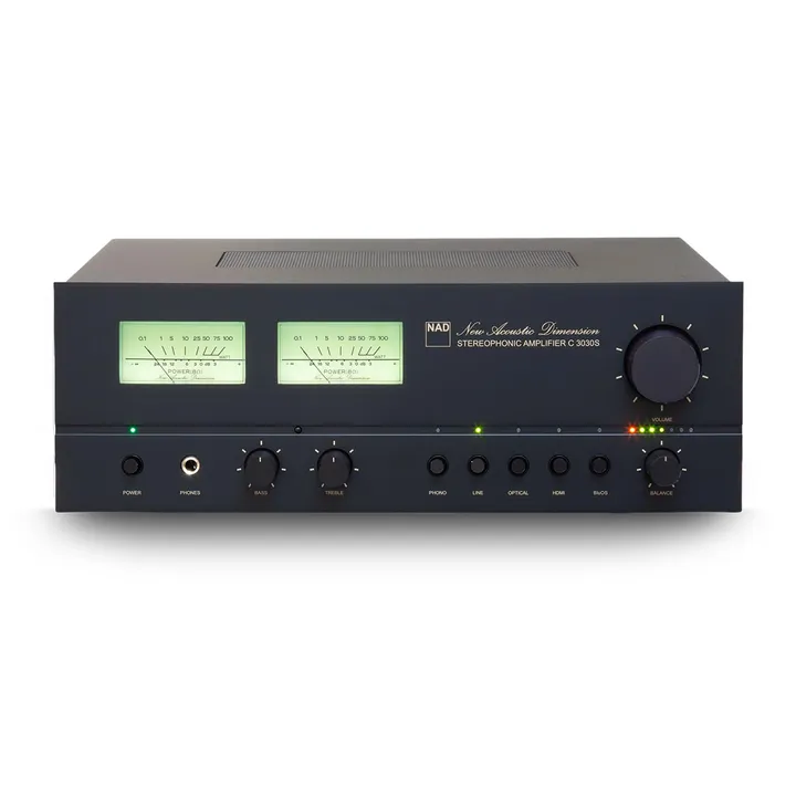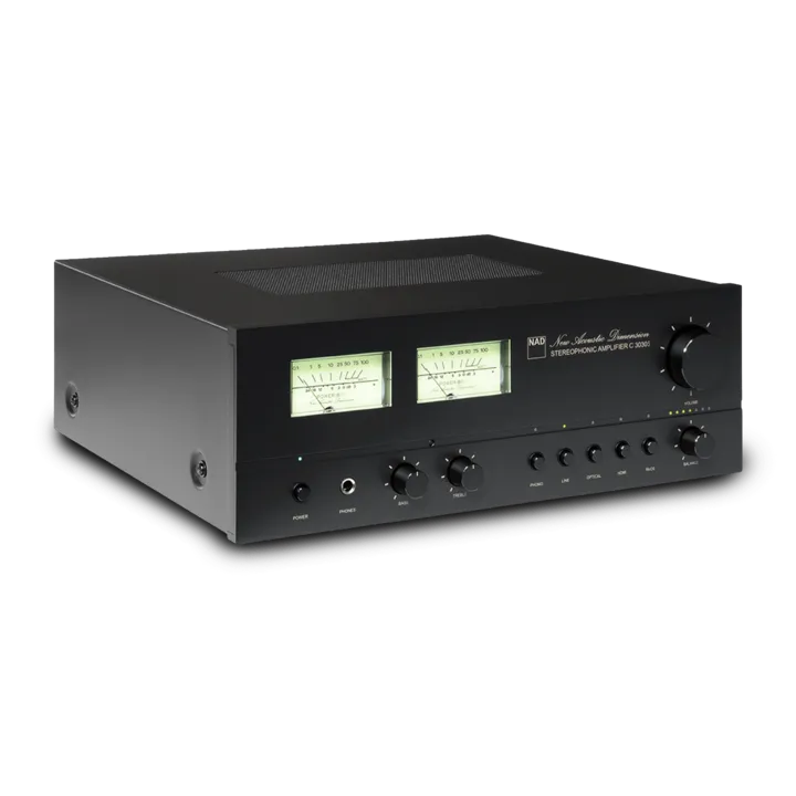 C 3030S fra canadiske NAD er en unik streaming stereoforstærker, der er skabt som en hyldest til den klassiske 3030-model fra 70’erne. Retro-detaljerne inkluderer traditionelle højre/venstre VU-metre, trykknapper til indgangsvalg og NAD’s originale ”New Acoustic Dimension” i smukt svunget skråskrift på fronten.