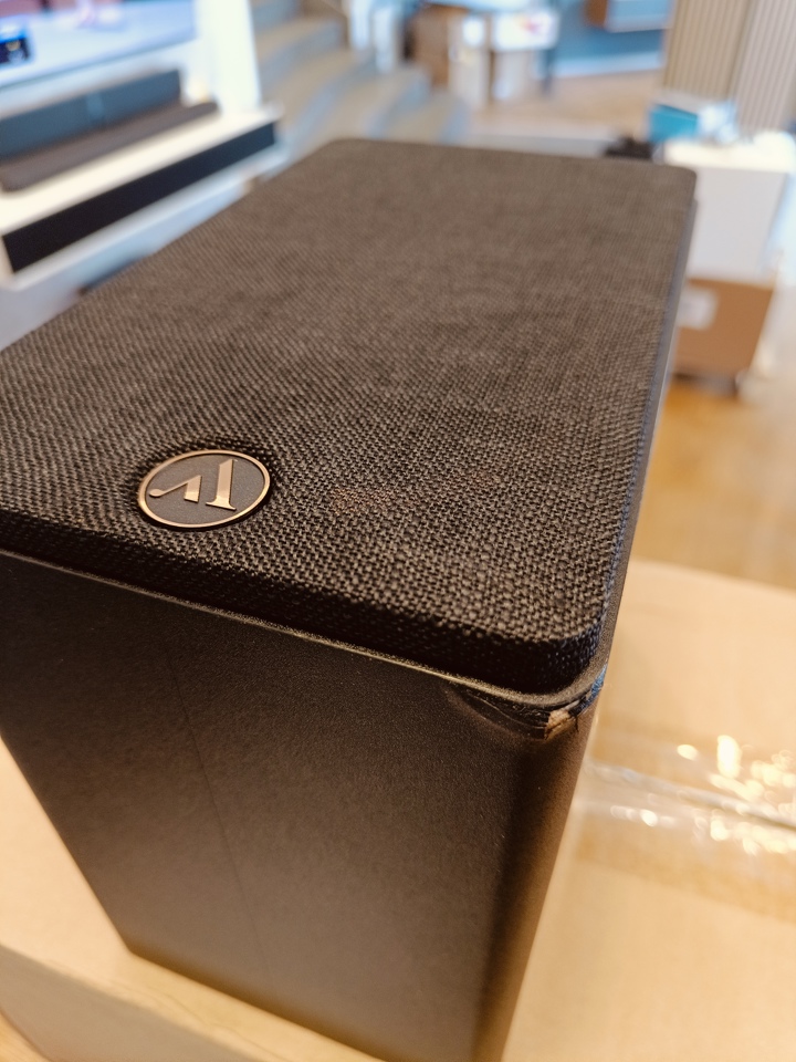 Stoffronten er smart fastgjort med magneter, så du ikke skal se på grimme huller, hvis du foretrækker at bruge højtaleren uden front, og under frontstoffet gemmer sig et elegant design med trim rings i aluminium.