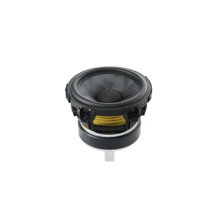 En anden nyhed er den ekstra kraftige svingspole, som er viklet i fire lag. Ved at fintune denne konstruktion er det lykkedes B&W at skabe en naturlig, mekanisk afrulning af de høje frekvenser. Det betyder, at den eneste komponent i delefilteret nu blot er en kondensator, som afskærer de dybe toner fra diskantenheden. Denne ”less is more”-tankegang er hentet direkte fra B&W’s high-end-serier.