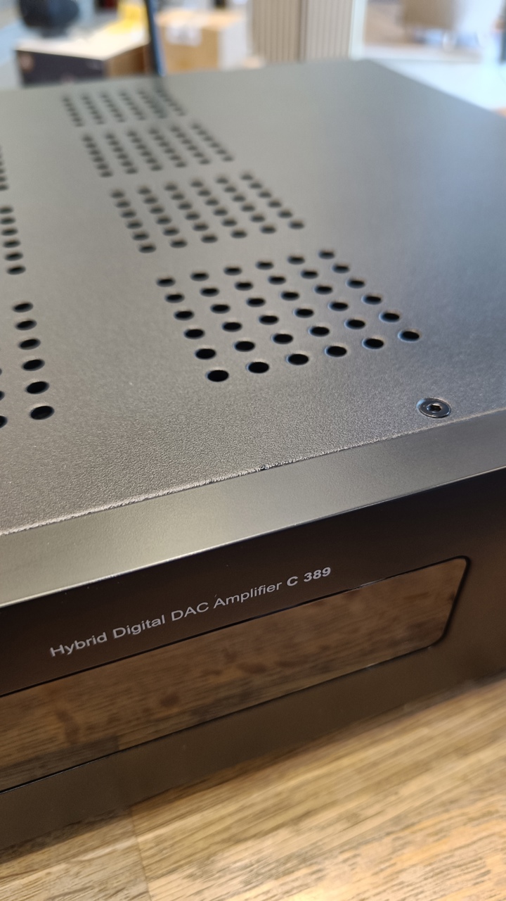 Den fremragende lydkvalitet i NAD C 389 bygger på et digitalt indgangsmodul kombineret med en analog switching-forstærker, også kendt som Klasse D. Denne konstruktion kalder NAD selv for en ”hybrid digital forstærker”, og det dækker ganske godt tankegangen bagved. Den aktive strømforsyning er langt mere kompakt end en traditionel type med kobber-transformator, men den yder endnu højere, er utroligt støjsvag og samtidig urokkeligt stabil over for de uundgåelige spændingsudsving på lysnettet.