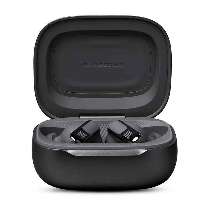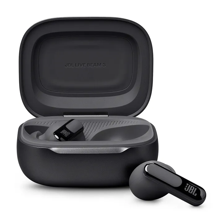 JBL Live Beam 3 – smarte in-ear earbuds med stilkdesign, 10 timers batteri, Adaptive ANC og ladeetui med farvedisplay