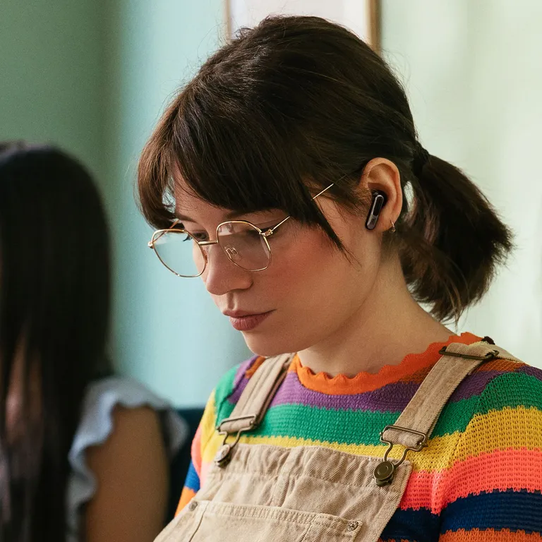 To ”beamforming” ydre mikrofoner på hvert ørestykke opfanger din stemme og leverer den så tydeligt som muligt, mens en indre mikrofon isolerer støj. Det vindtætte design betyder, at dem, du taler med, ikke hører forvrængning, selvom du er udenfor på en blæsende dag. Call Equalizer hjælper dig med at kontrollere præcist, hvordan du lyder for andre, og hvordan du vil have dem til at lyde for dig.