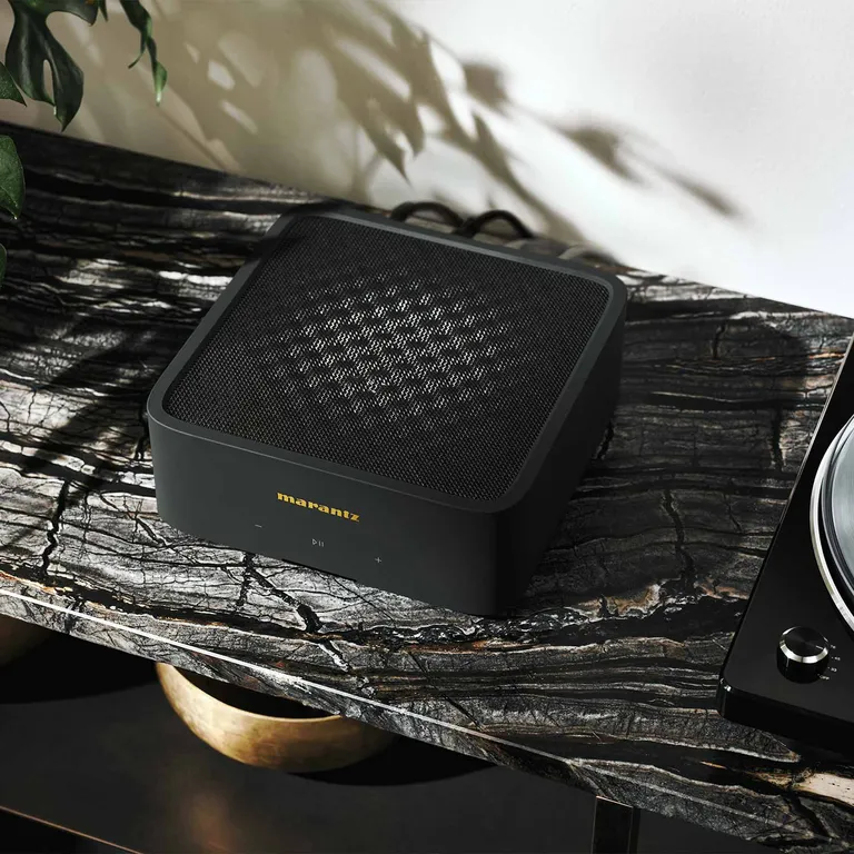 På frontpladen finder du det elegante gyldne Marantz-logo og diskrete touchknapper til de mest basale funktioner som lydstyrke, play/pause m.m. Den daglige betjening og musikvalget klarer du direkte fra din telefon, og hvis du virkelig nænner det, kan du uden problemer placere MODEL M1 ude af syne, f.eks. i et skab eller et hi-fi-møbel. Til installationsbrug kan du placere to styk ved siden af hinanden i et standard 19” rack.