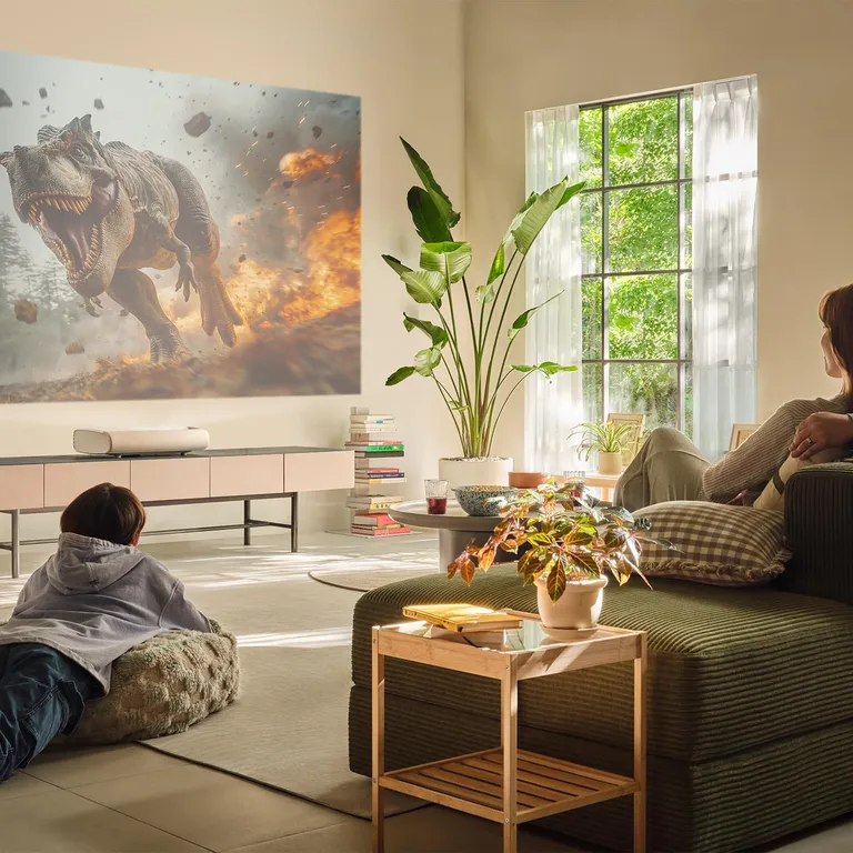 Du behøver heller ikke nødvendigvis at anskaffe et stort lærred, selvom det giver den helt optimale billedkvalitet. En hvid væg kan sagtens bruges. Det gør Samsung The Premiere anvendelig for dig, der heller vil bruge tiden på at se film end at rode med teknisk opsætning. Med høj lysstyrke og Vision Boost kan du nyde store og flotte billeder, også selvom der ikke er helt mørklagt i stuen.