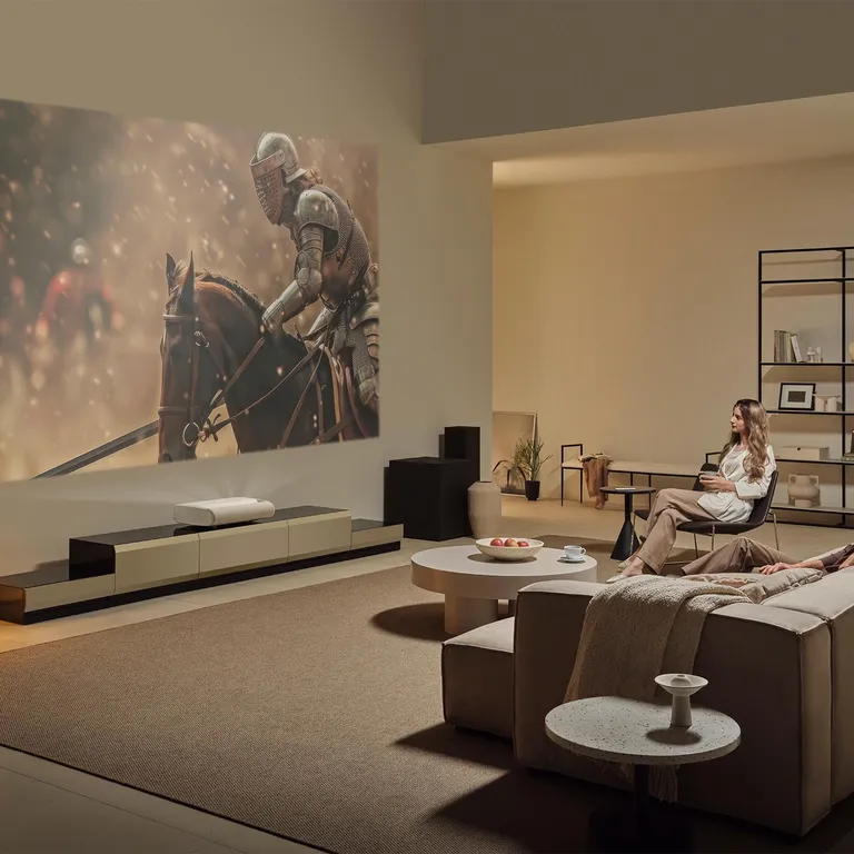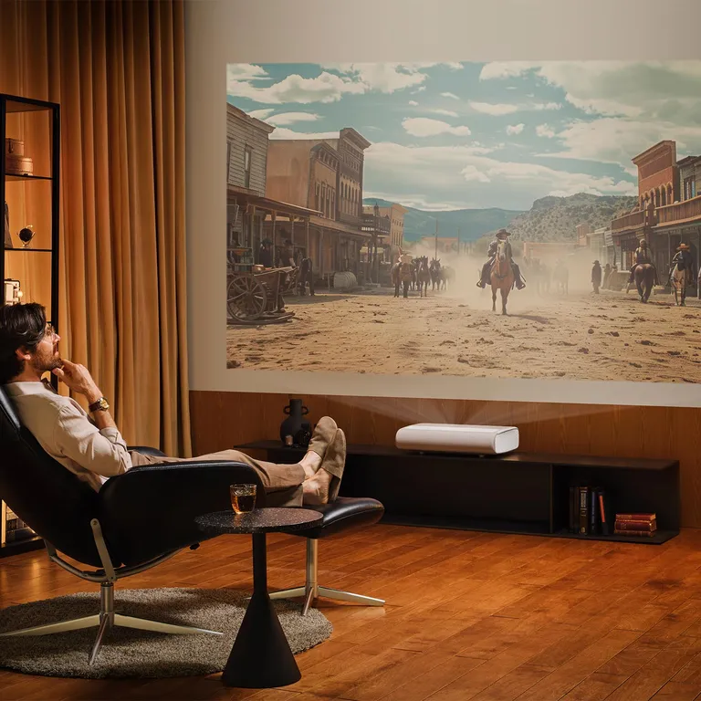 Du behøver heller ikke nødvendigvis at anskaffe et stort lærred, selvom det giver den helt optimale billedkvalitet. En hvid væg kan sagtens bruges. Det gør Samsung The Premiere anvendelig for dig, der heller vil bruge tiden på at se film end at rode med teknisk opsætning. Med høj lysstyrke og Vision Boost kan du nyde store og flotte billeder, også selvom der ikke er helt mørklagt i stuen.