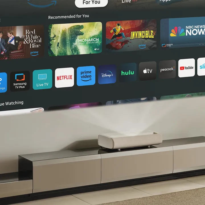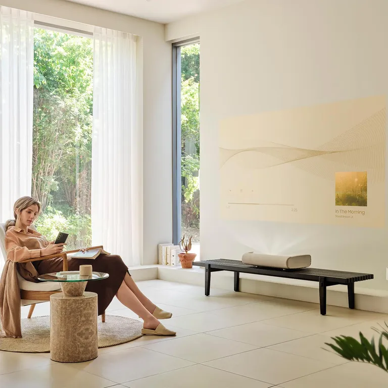 The Premiere har indbygget Samsung Tizen OS, som giver dig de samme indbyggede Smart-funktioner som Samsungs TV. Det vil sige, at den understøtter alle dine yndlings-streamingtjenester og apps. Det samme gælder samarbejde med din mobil, hvad enten du foretrækker iPhone eller Android. AirPlay 2 og nem spejling af mobilskærmen betyder, at projektoren er lige så let at bruge i det daglige som et TV.