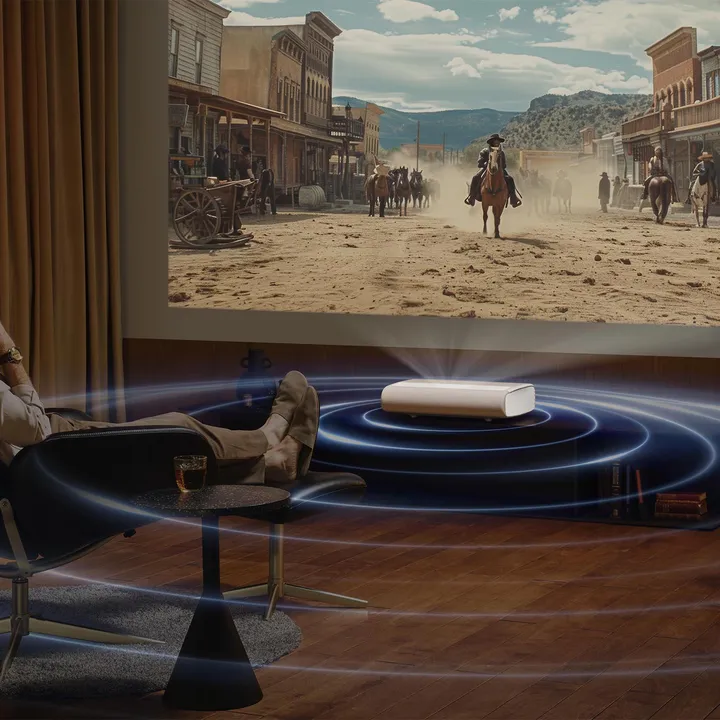 Det indbyggede højtalersystem i The Premiere 9 kan klare basale behov som nyhedsudsendelser og lignende. Men vi anbefaler naturligvis stadig, at du anskaffer en god soundbar eller en rigtig lydløsning med separate højtalere, som kan matche det formidable billede. Så er du klar til de helt store oplevelser med dine yndlingsfilm og gaming. Lyden er den halve oplevelse!