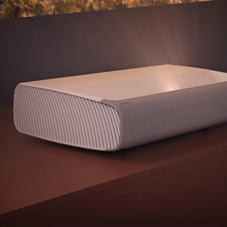 Samsung The Premiere 9 (LPU9D) er noget så sjældent som en entusiast-projektor, der er lige så let at bruge som et livsstilsprodukt. Stil den på en skænk op ad et lærred eller en hvid væg, og sæt dig til rette i sofaen med popcorn og Netflix. Projektoren skal bare 24 cm ud fra væggen – så har du et imponerende billede på hele 130 tommer!