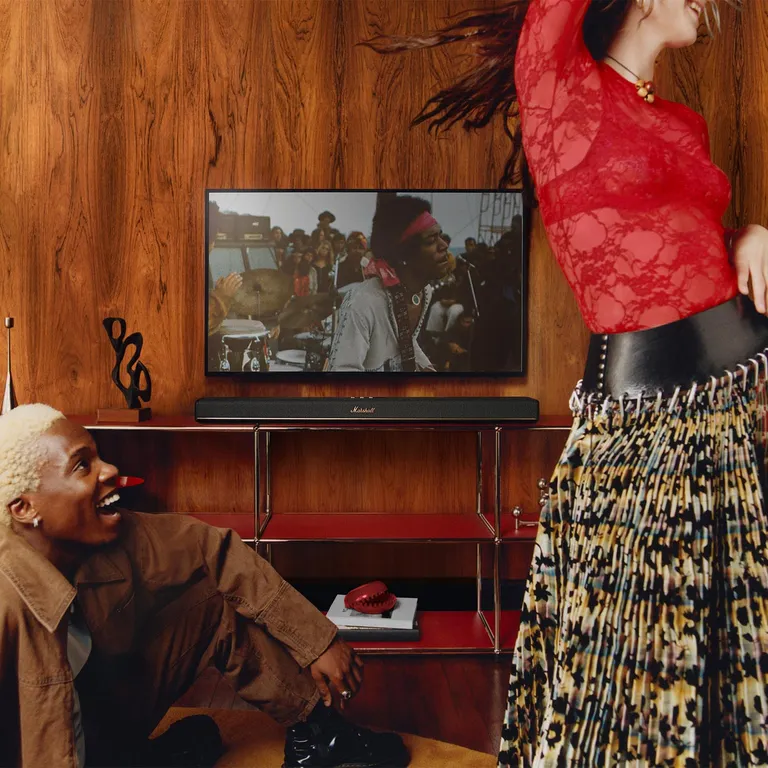 Heston 120 er en eksklusiv TV-soundbar i ikonisk Marshall-design, som på elegant vis trækker tråden tilbage til firmaets legendariske guitarforstærkere. Både finishen og det gyldne betjeningspanel er lige til at få hjertebanken af, hvis du har rock’n’roll i blodet. Inde under overfladen er Heston 120 til gengæld spækket med avanceret digital teknologi, som er klar til at forkæle din TV-oplevelse.