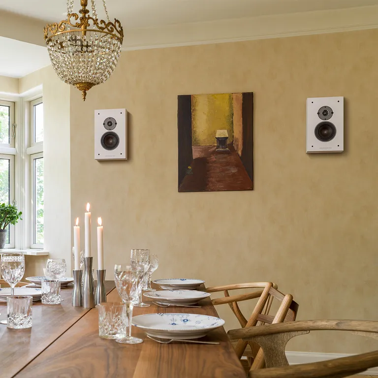 OBERON ON-WALL er en flad, diskret og overraskende kraftfuld kompakt væghøjtaler, som kan levere ægte hi-fi-lyd til både hjemmebio og musik uden at gøre visuelt opmærksom på sig selv. Lydbilledet er stort, dynamisk og velopløst med en bas som fra en langt større højtaler.