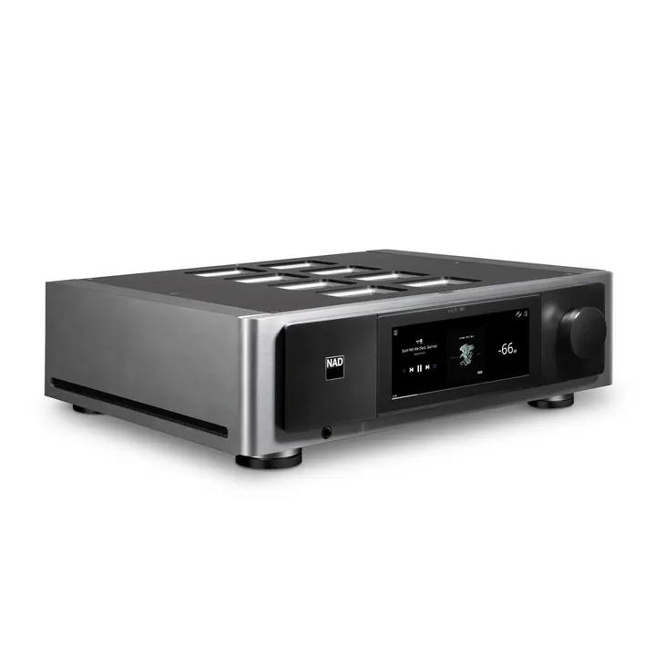 NAD M33 V2 er baseret på det samme flotte design i massivt aluminium, som du måske allerede kender fra de øvrige Masters Series-produkter. Du vil nyde det utrolig lækre 7” touch-farvedisplay, både når du betjener M33 V2 direkte på apparatet, og når du via Bluesound lytter til musik fra en streamingtjeneste eller internetradio. I så fald får du nemlig album-art og oplysninger om musiknummer, kunstner m.m. direkte på panelet.