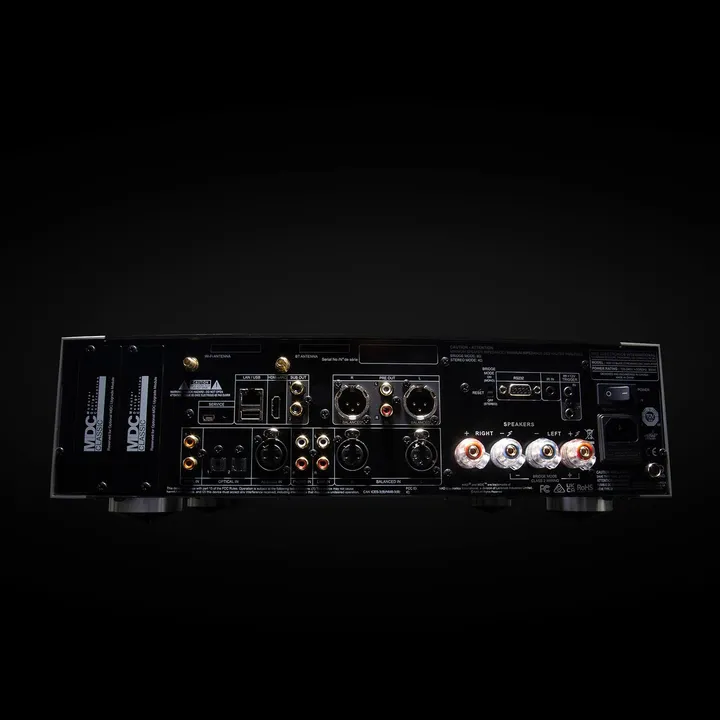På bagsiden af NAD M33 V2 finder du et overflødighedshorn af tilslutninger, heriblandt både balancerede (XLR) og ubalancerede analoge indgange samt en dedikeret pladespiller-indgang til både MM- og MC-pickupper. Den indbyggede RIAA-forstærker er af meget høj kvalitet med ekstremt præcis RIAA EQ, avanceret infrasonisk filter og en kæmpestor overload margin. Du skal være ualmindelig kritisk eller have helt specielle behov for at få brug for et eksternt RIAA-trin.