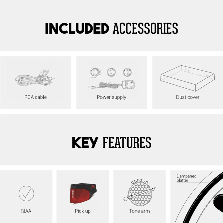 - Leveres køreklar med fabriksmonteret pickup (Ortofon 2M Red)