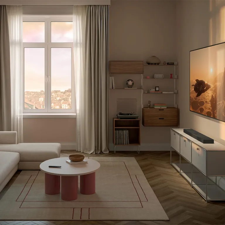 Via HDMI og den avancerede indbyggede processor kan XIO modtage og afkode et Dolby Atmos eller DTS:X lydsignal fra dit TV og skabe et 3D surround-lydbillede med virtuelle bag- og højdekanaler. Selvom det stadig ikke er en ægte multikanals hjemmebiograf, får du en forbløffende god surround-effekt uden samtidig at få receiver, højtalere og tilhørende kabler ind i stuen.