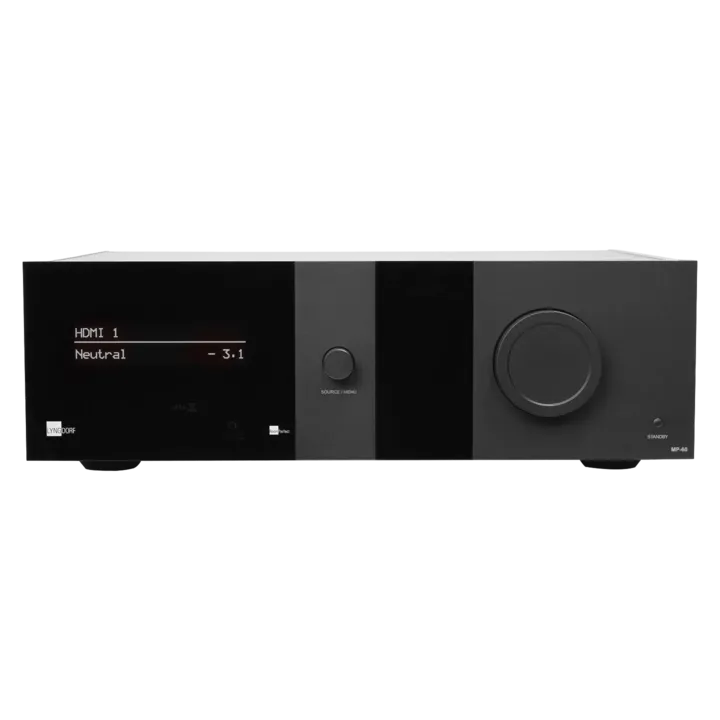 MP-60 2.1 har fuld understøttelse af de nyeste surround-lydformater som Dolby Atmos, DTS:X Pro og AURO-3D. Du får 5 x HDMI-ind og 2 x HDMI-ud med HDMI 2.1 inklusive eARC, Dynamic Lip-Sync og QMS (Quick Media Switching) samt de seneste formater inden for dekodning og post-processing.