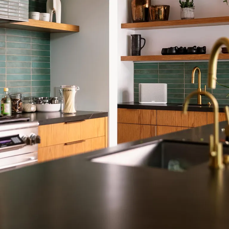Fra din app-fjernbetjening styrer du musikvalg og lydniveau individuelt for hvert rum, men du kan også vælge at spille den samme musik i hele huset. Eller slå flere rum sammen i grupper, f.eks. i en voksen- og børneafdeling.