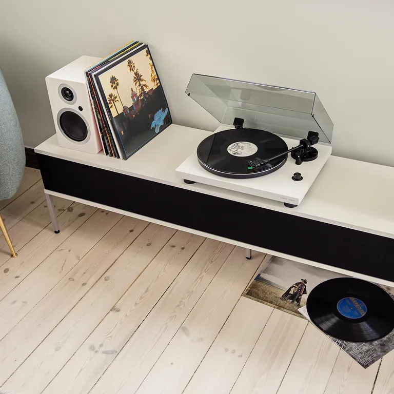 En velspillende Ortofon OM5e pickup er monteret fra fabrikken, så du er køreklar med det samme. Når nålen er slidt, kan du købe en ny nåleindsats separat i stedet for at udskifte hele pickuppen.