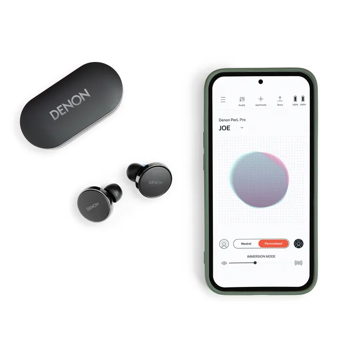 Via Denon-appen sender systemet en række testtoner ind i dit øre og måler den mikroskopiske lydrespons fra din trommehinde og dit indre øre. Herefter beregnes din personlige lydprofil, som optimerer lyden fra høretelefonerne til dit øre. Resultatet er en lyd, hvor der er ”hul igennem” på en måde, du meget sjældent vil opleve fra høretelefoner i denne prisklasse. Det hele sker helt automatisk i løbet af et par minutter, og når først du har fået din personlige profil, bliver den gemt i appen én gang for alle, så du ikke skal spekulere mere på opsætning.