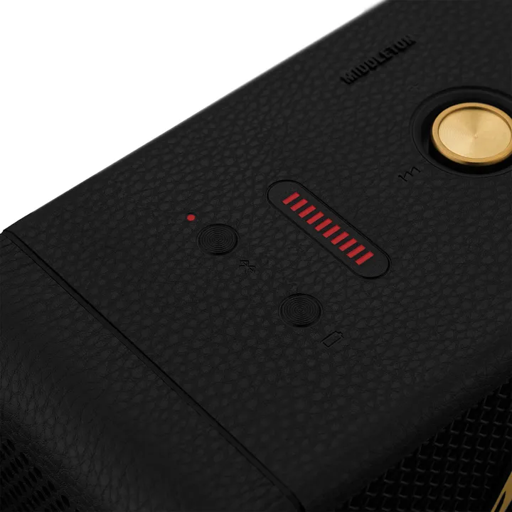 Designet er taget direkte ud af Marshalls rockunivers. Middleton er lavet i samme stil som Marshalls legendariske guitarforstærkere med sort vinyl, råt metalgitter, ikonisk Marshall-logo og gylden multi-kontrolknap på toppen. Musikken spiller du direkte fra din telefon via Bluetooth eller via minijack-indgangen. Bluetooth 5.1 giver batteritid, stabilitet og rækkevidde helt i top, og Dynamic Loudness optimerer klangbalancen, så du får den bedst mulige lyd, uanset om du spiller højt eller lavt.