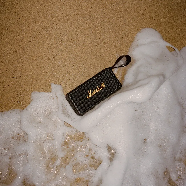 Marshall Middleton er en kompakt bærbar Bluetooth-højtaler med over 20 timers batteritid. Hvis du vil have en cool og velspillende trådløs højtaler, der samtidig klarer næsten alt, hvad du kan udsætte den for, går du ikke galt i byen her. Middleton er IP67-certificeret, så den klarer både støv og sand og vand, inklusive en hurtig dukkert i poolen. De indbyggede højtalere spiller både fremad og bagud, så du kan sætte Middleton i midten, mens du sidder i rundkreds og hygger sammen med dine venner.