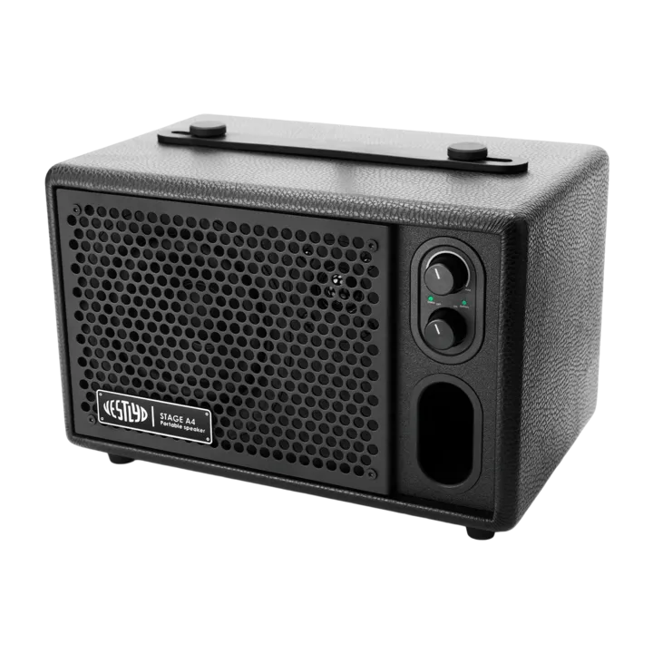 Stage A4 er en kompakt, bærbar Bluetooth-højtaler med et råt PA-inspireret design, der placerer dig i det samme lydunivers som de store Vestlyd powermonitors. Her får du det bare i et format, som du nemt kan hanke op i og tage med dig overalt, både ude og inde.