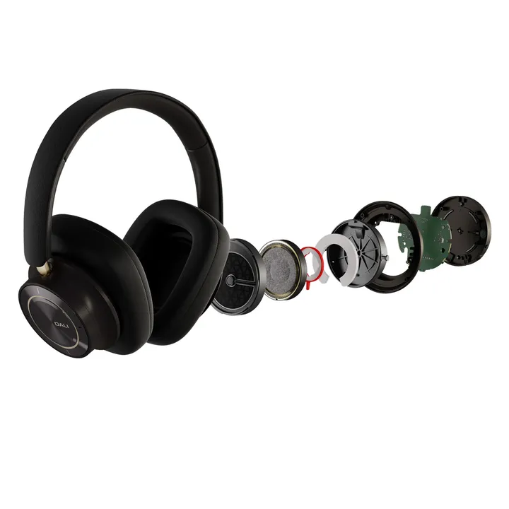 DALI er først og fremmest en højtalerproducent i verdensklasse, og derfor er IO-12 tænkt og bygget som et par rigtige hi-fi-højtalere, blot i en form som du kan bære komfortabelt på hovedet. De indbyggede drivere er udviklet helt fra bunden af DALI selv – et komplet højtalersystem med gummiophæng, svingspole, svingspolefolie og papirmembraner.