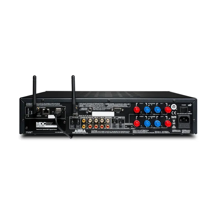 Tro det eller lad være: Alt dette er kun begyndelsen! C368 har nemlig også to pladser til NAD's geniale MDC-opgraderingsmoduler, og så går festen op i et endnu højere gear. Hvad siger du for eksempel til at få wi-fi og markedets mest velspillende trådløse multirums-musiksystem bygget ind i forstærkeren? Så nemt som at sige "Bluesound"!