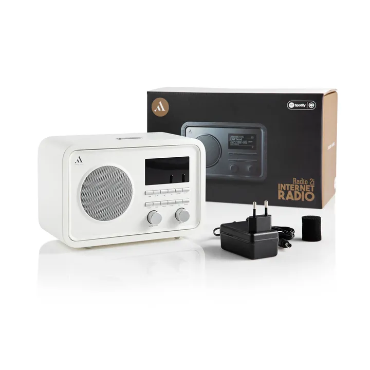 RADIO2i er den helt komplette bordradio med både internetradio, Spotify Connect, Bluetooth, DAB+ og FM. Her kan du lytte til alle tænkelige radiostationer fra hele kloden, du kan vælge mellem mange millioner musiknumre direkte fra din Spotify app, og alt det andet kan du streame trådløst fra din smartphone via Bluetooth. Lydkvaliteten er imponerende for en kompakt bordradio, og det klare OLED-display giver et eksklusivt look. Du styrer begivenhederne fra fronten eller via app fra din smartphone.