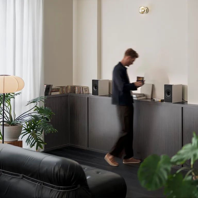 Via kabel kan du tilslutte traditionelle musikkilder som f.eks. CD-afspiller eller pladespiller (RIAA-forstærker er indbygget). Du kan tilslutte TV-lyd via enten HDMI eller optisk indgang, og hver højtaler har udgang for subwoofer, så du kan få den helt store lyd, også i store lytterum. Til KEF’s egne subwoofere kan du endda få en dedikeret trådløs adapter (ekstratilbehør), så du slipper for endnu et kabel.