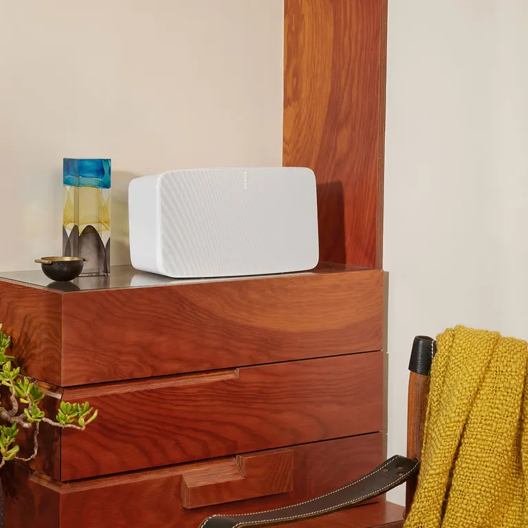 Sonos Five er en trådløs multirums højtaler med flot lyd, kraftig indbygget stereoforstærker og hele 6 indbyggede højtalerenheder. Med denne solide bestykning får du råstyrke nok til musiklytning i et lidt større lokale, for eksempel et køkken/alrum.