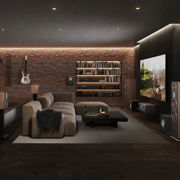 Den elegante og omhyggeligt beregnede kant omkring letvægtsmembranen sikrer en meget fin spredning af lyden. Det betyder, at du ikke behøver at sidde lige foran højtalerne for at få et overbevisende stereoperspektiv. Her kan hele familien lytte med, uden at nogen går glip af noget.