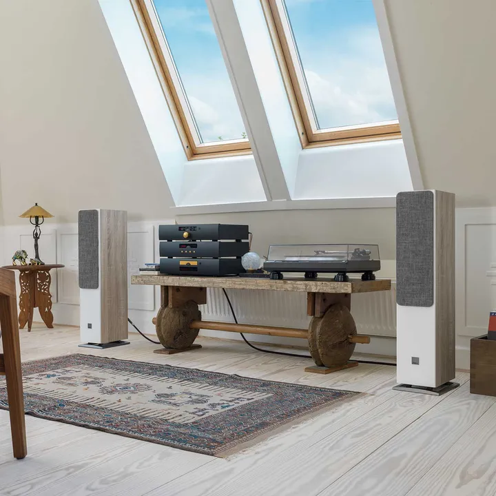Den elegante og omhyggeligt beregnede kant omkring letvægtsmembranen sikrer en meget fin spredning af lyden. Det betyder, at du ikke behøver at sidde lige foran højttalerne for at få et overbevisende stereoperspektiv. Her kan hele familien lytte med, uden at nogen går glip af noget.