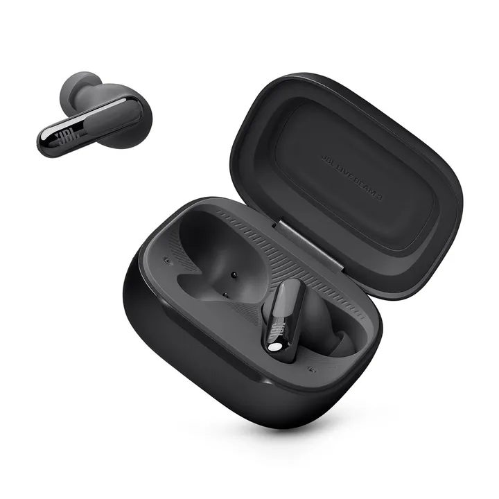 JBL Live Beam 3 – smarte in-ear earbuds med stilkdesign, 10 timers batteri, Adaptive ANC og ladeetui med farvedisplay