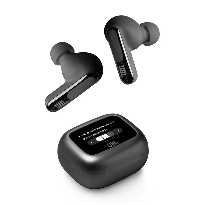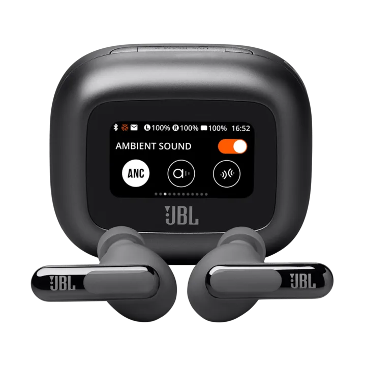 JBL Live Beam 3 er smarte trådløse in-ear høretelefoner (earbuds) med stilkdesign og touch-betjening. Her får du en unik brugeroplevelse med det smarte touch-farvedisplay på ladeetuiet, hvor du kan foretage en lang stribe indstillinger, uden at du skal have telefonen op af lommen hver gang. Du kan endda lægge dine egne fotos ind som baggrund, så du kan have din udkårne eller børnene med i lommen.