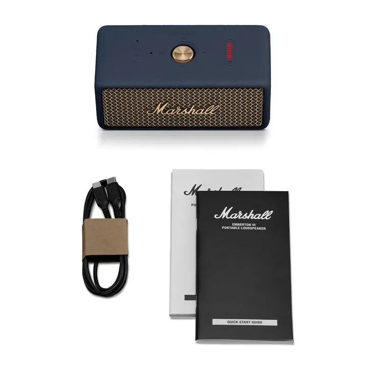 Marshall Emberton III fås i sort finish. USB-C ladekabel medfølger.