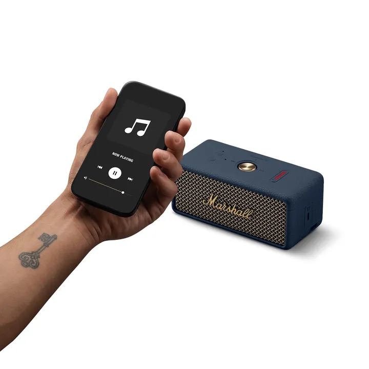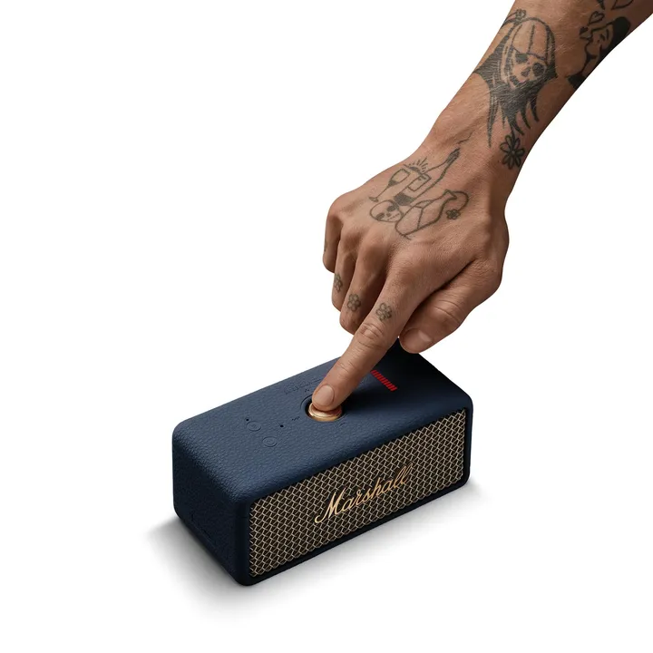 Marshall Emberton III er en superkompakt Bluetooth-højtaler med over 32 timers spilletid på det indbyggede batteri. Emberton III er helt vandtæt, (IP67) så den klarer både støv og sand og vand, inklusive en hurtig dukkert i poolen.