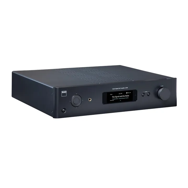 Den fremragende lydkvalitet i NAD C 379 bygger på et digitalt indgangsmodul kombineret med en analog switching-forstærker, også kendt som Klasse D. Denne konstruktion kalder NAD selv for en ”hybrid digital forstærker”, og det dækker ganske godt tankegangen bagved. Den aktive strømforsyning er langt mere kompakt end en traditionel type med kobber-transformator, men den yder endnu højere, er utroligt støjsvag og samtidig urokkeligt stabil over for de uundgåelige spændingsudsving på lysnettet.