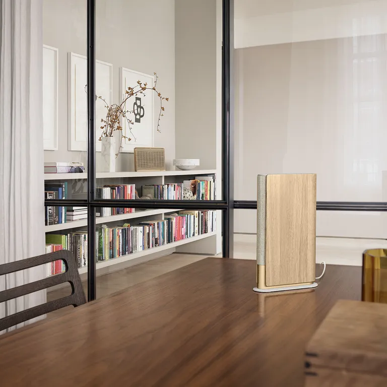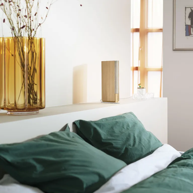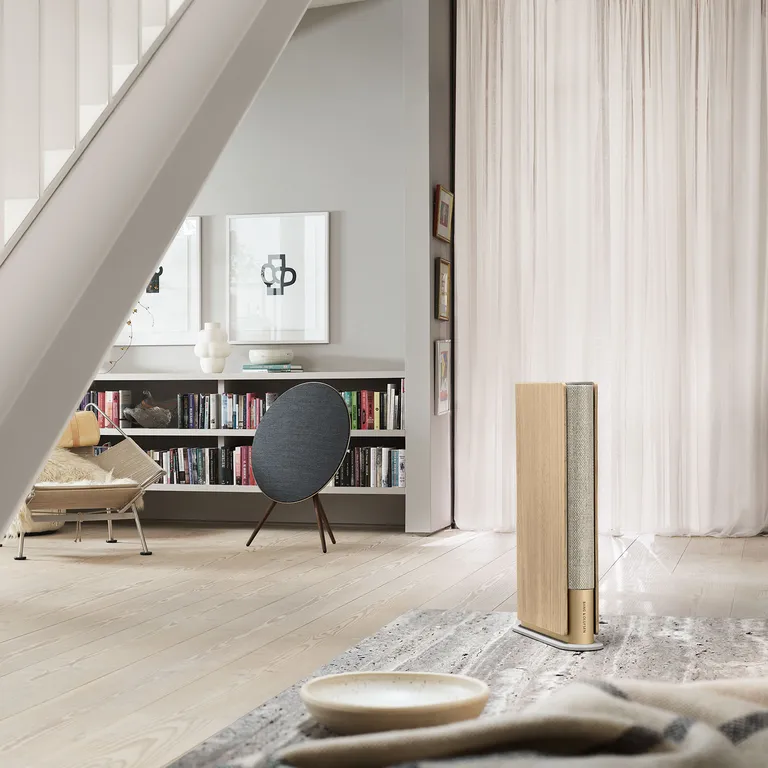 Via den dedikerede Bang & Olufsen app kan du fintrimme klangen til din personlige smag. Som prikken over i’et får du også aktiv rumkorrektion, hvor højtaleren sender en række testtoner ud og korrigerer klangen til at matche rummet og den valgte placering (hjørne, hylde, fritstående etc.). Du har kort sagt alle muligheder for at få den optimale lyd fra Beosound Emerge, uanset hvor og hvordan du bruger højtaleren.