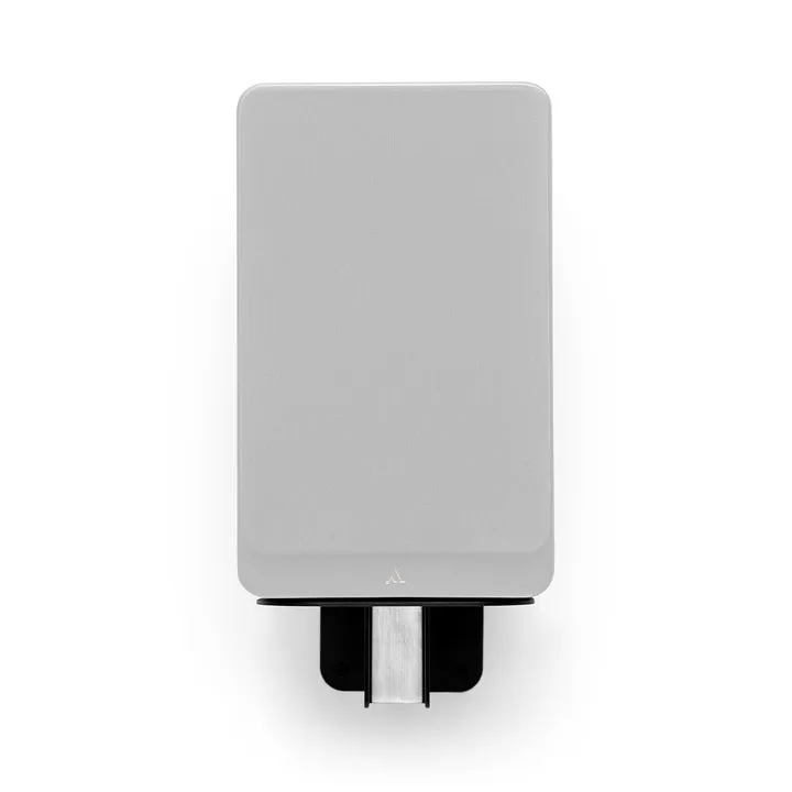 STATIV Wall Bracket er robust pulverlakeret i sort, og der medfølger en elegant front i børstet aluminium, som du kan bruge, hvis du gerne vil have dette look. Hvis du vil have dine højtalere helt urokkeligt placeret, er toppladen forsynet med huller, så du kan skrue højtalerne fast.