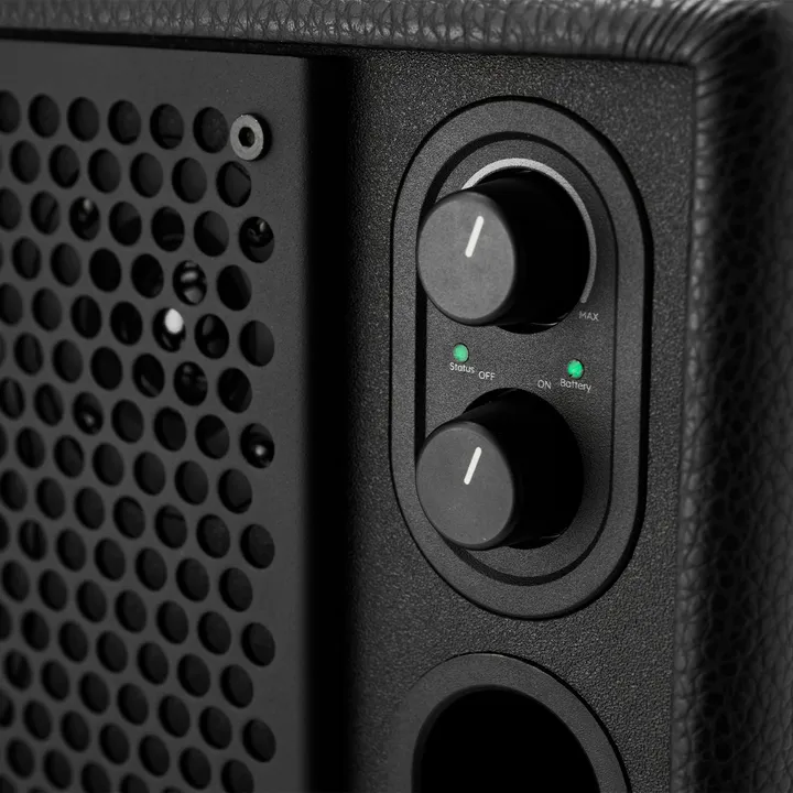 Enhederne drives af hver deres individuelle Klasse D-forstærker, og hele systemet er omhyggeligt fintunet, så du får det bedste mix af lydkvalitet og råstyrke. Via drejeknappen på bagpladen kan du justere basniveauet, så du lynhurtigt kan få den rigtige lyd, uanset om du spiller i det fri eller i et lille lukket rum. Meget nemmere end at skulle rode med en app-EQ, som du nemt glemmer at nulstille igen bagefter.