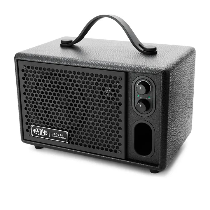 Stage A4 er en kompakt, bærbar Bluetooth-højtaler med et råt PA-inspireret design, der placerer dig i det samme lydunivers som de store Vestlyd powermonitors. Her får du det bare i et format, som du nemt kan hanke op i og tage med dig overalt, både ude og inde.