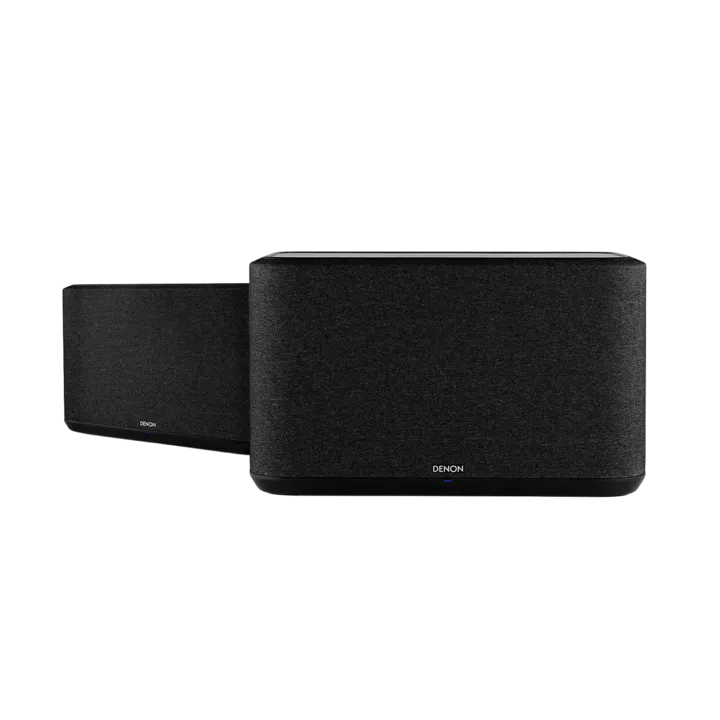 - To styk kan bruges som højre/venstre stereopar i et kraftigt trådløst stereoanlæg eller som trådløse baghøjtalere i en Denon HEOS hjemmebio